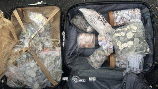 No bagageiro, os agentes localizaram 15 malas contendo dinheiro em espécie. Entre as moedas encontradas estavam valores oriundos de países como Venezuela, Irã, Nigéria, Indonésia e Síria.